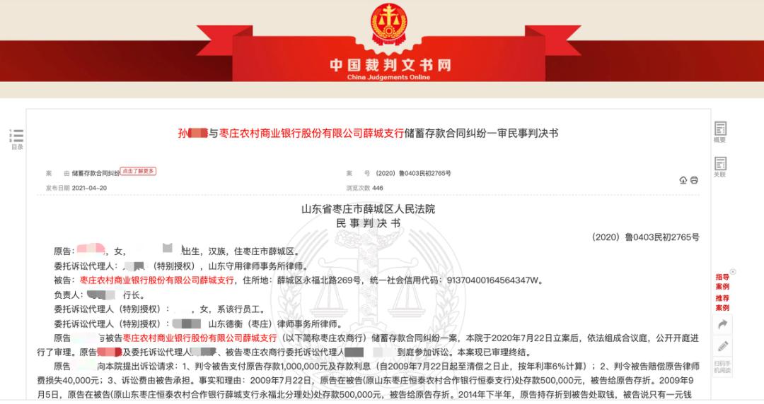为依法维护储户利益,枣庄农商银行薛城支行已按法院判决,将赔偿款及利息等款项划至法院指定账户。