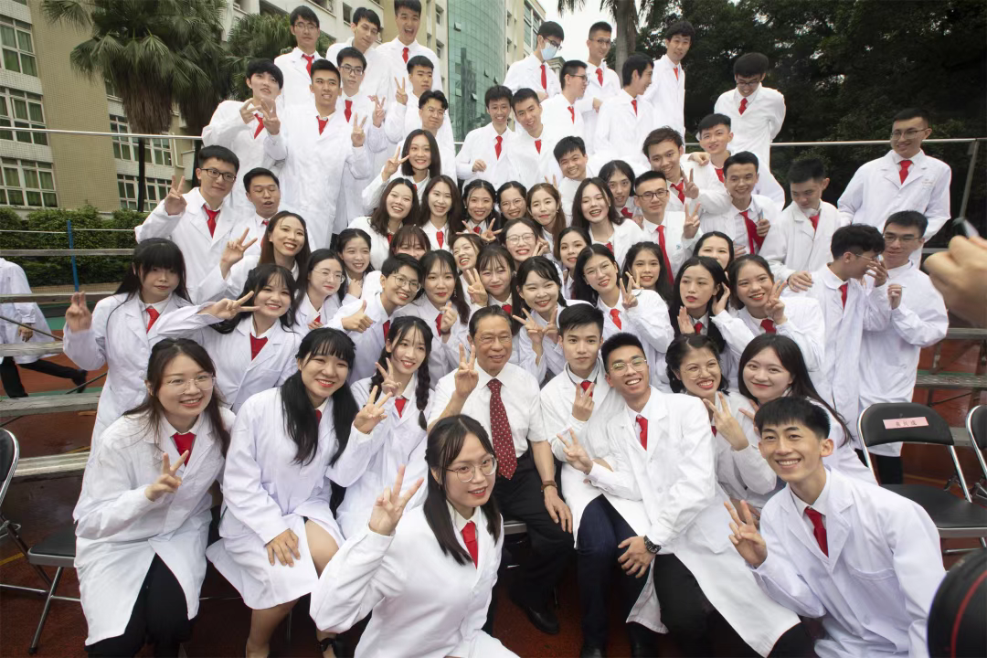 近日,广州医科大学第一临床医学院及南山学院举行了毕业典礼,钟南山院士到场与毕业生们合影,嘱他们“以后常回家看看”。