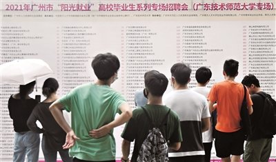 据透露,今年上半年,广州市人社局联动各区人社局、市院校就业创业“e站”共举办线上线下“阳光就业”等各类高校毕业生招聘会635场,参会单位约3.56万家次,提供招聘岗位96.72万个。下半年计划在华南理工大学、广东外语外贸大学、广东财经大学等院校举办10场“阳光就业”高校毕业生系列专场招聘会;在广州市高校毕业生就业信息网全天候举办“阳光就业”2021年就业见习/网络匹配会。同时,积极引导毕业生到基层就业、鼓励民企吸纳毕业生就业。