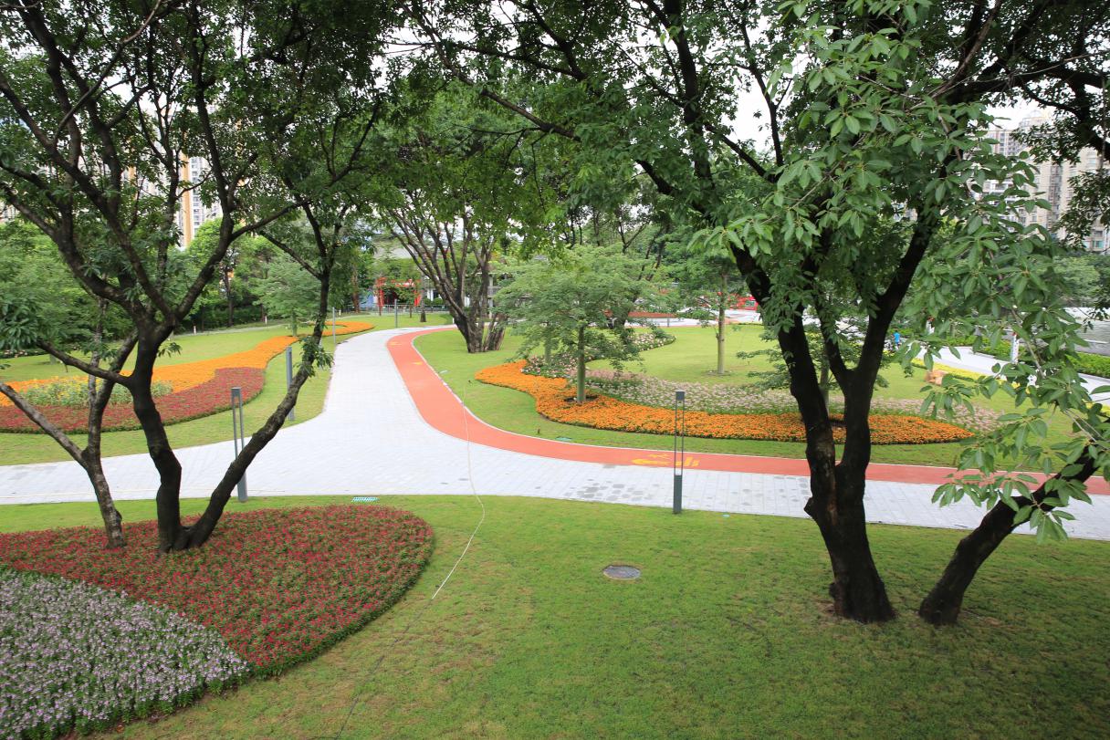公园改造后建设面积约4万平方米,新增750米碧道,以党建文化为主题,打造了“一路一道多空间”的公园结构,通过一条红色文化线路、一个绿色海绵碧道及四个主题红色空间。