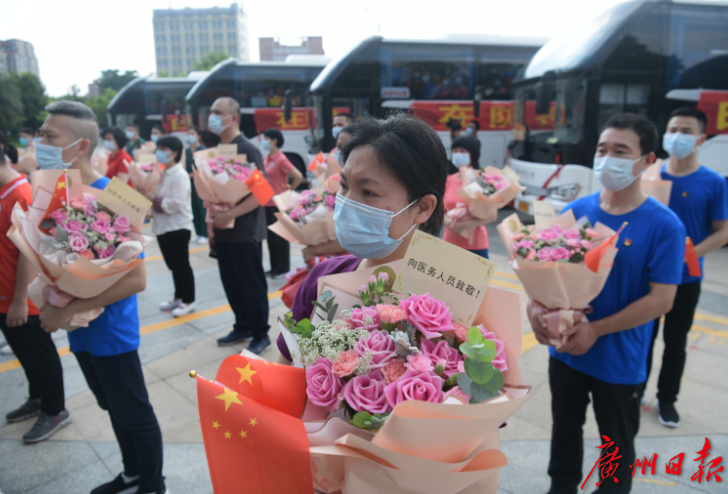 医疗队队员代表、广州医科大学附属第一医院重症医学科副主任、主任医师徐永昊说,这次支援市八医院是职责所在,我们坚持人民至上、生命至上,时刻把患者的安危摆在首位,用实践证明心中有信仰、脚下有力量,生命就有希望。将一如既往弘扬伟大抗疫精神,以行动践行初心,用担当履行使命,全力做好常态化疫情防控各项工作,为守护人民健康作出更大贡献。