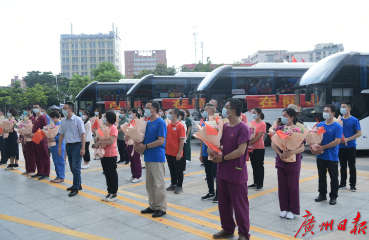 7月9日下午,广州市举行支援广州医科大学附属市八医院医疗队欢送仪式。据悉,支援市八医院医疗队共990人,来自中山大学附属第三医院、广州医科大学各附属医院、市第一人民医院、市红十字会医院、市第十二人民医院等36家医疗机构,于6月13日进驻。