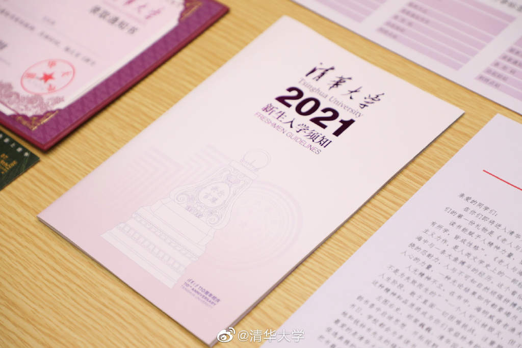 7月10日上午,清华大学首封录取通知书发出。随录取通知书一起寄出的,还有校长邱勇给新生的赠书《老人与海》以及致新生的信。另外,通知书里还有一张纪录电影《大学》的通用观影兑换券,所有2021级本科新生都可以凭券免费观影。