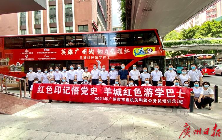据介绍,“红色印记悟党史 羊城红色游学巴士”培训课程是以双层巴士为载体,将广州具有代表性的红色景点连点成线,紧密联系起来,打造四条红色主题路线,一个“红堡垒流动学堂”。