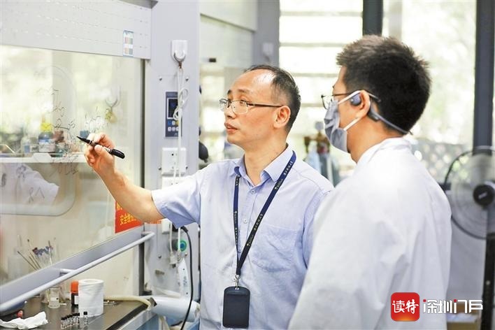 谭斌教授(左)在实验室指导学生。 深圳特区报记者 温涛 苗威 摄