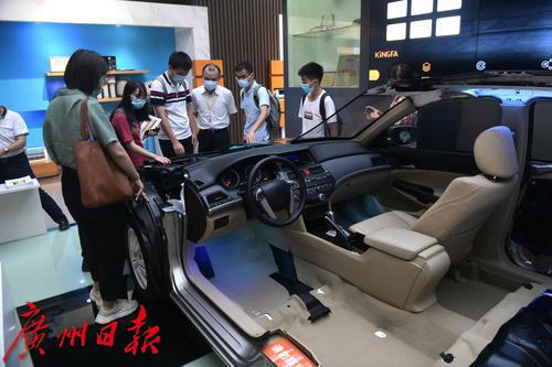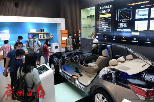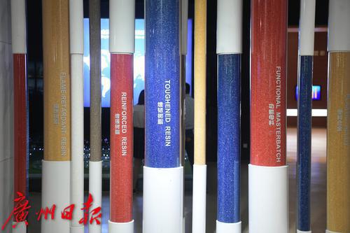 图为金发科技展厅里展示的用该公司材料组装的汽车。