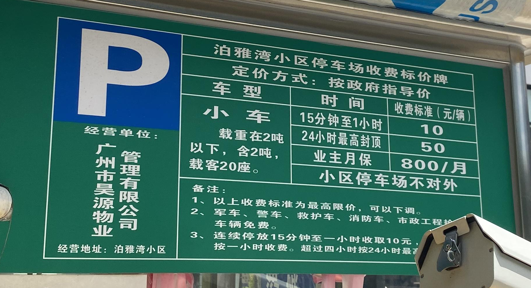 收费标准:10元/小时,24小时最高封顶50元