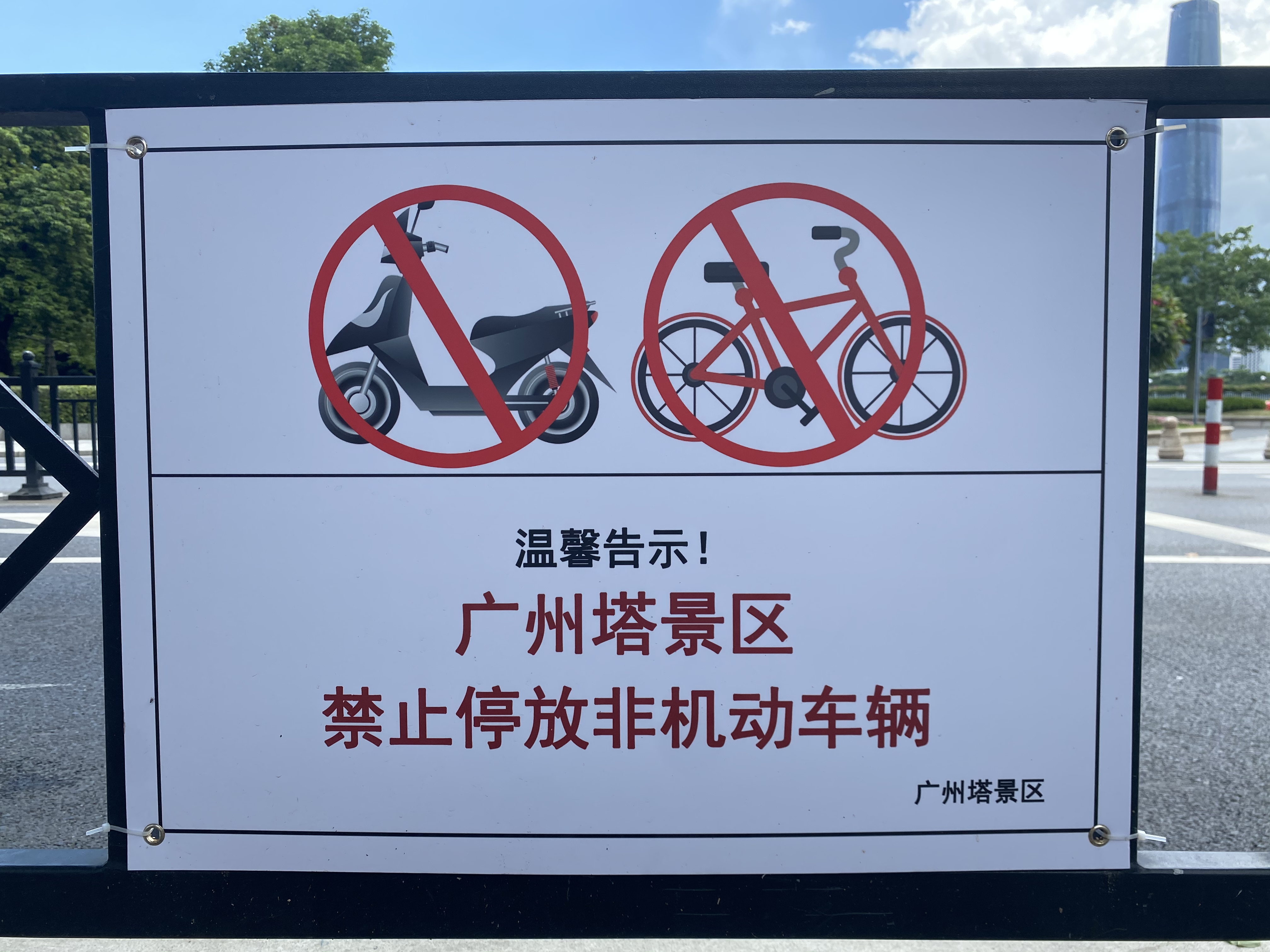 骑行:广州塔景区禁止停放非机动车辆,景区内不设有共享单车停放区域,如市民选择骑行共享单车出行,需遵守交通指引工作人员的指引,停放在指定区域。记者走访发现,在艺苑路与艺洲路交叉口设有共享单车停放区域,骑车出行的市民需提前停放好共享单车,再步行约730米到达海心桥入口处。