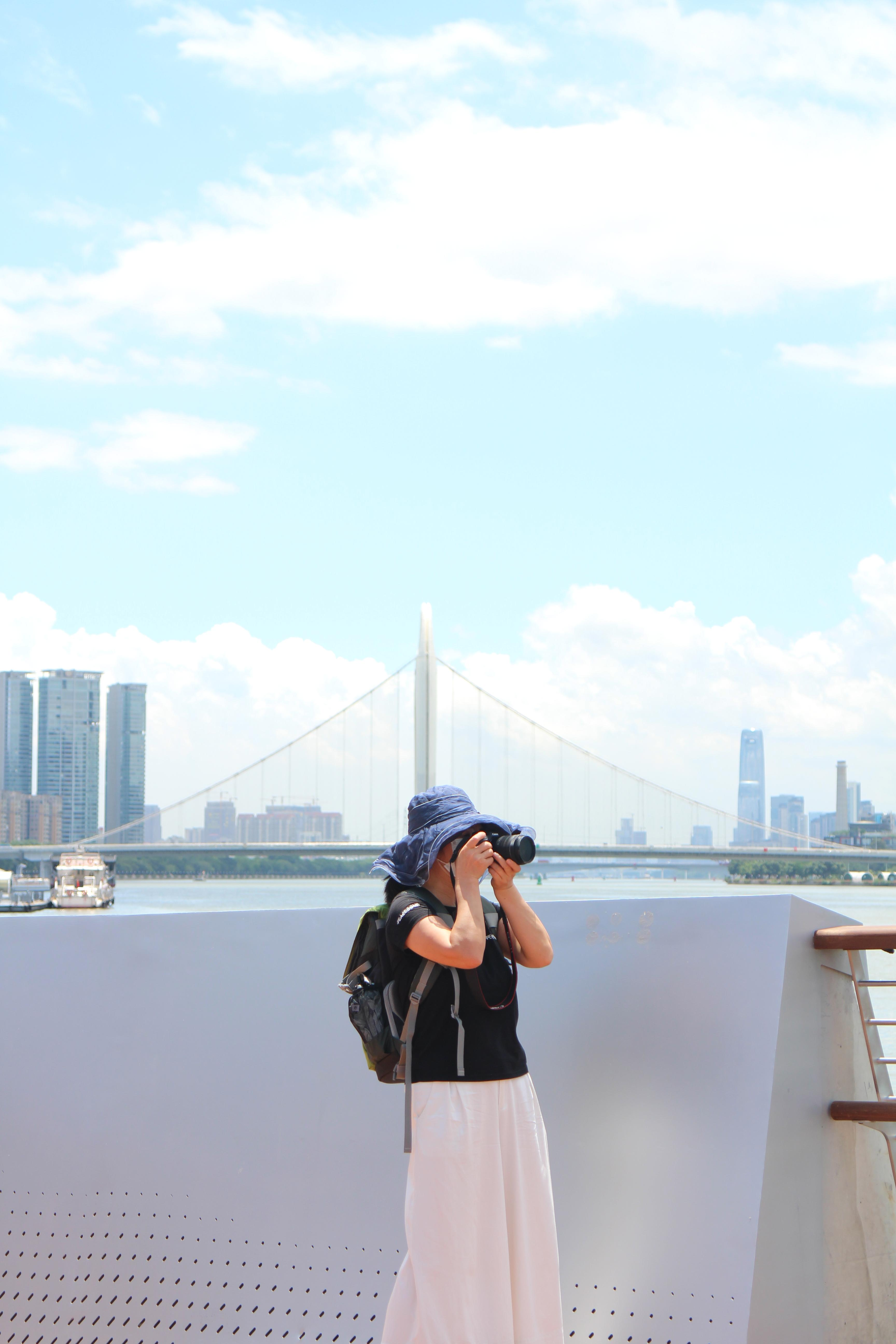 摄影爱好者拍摄海心桥。