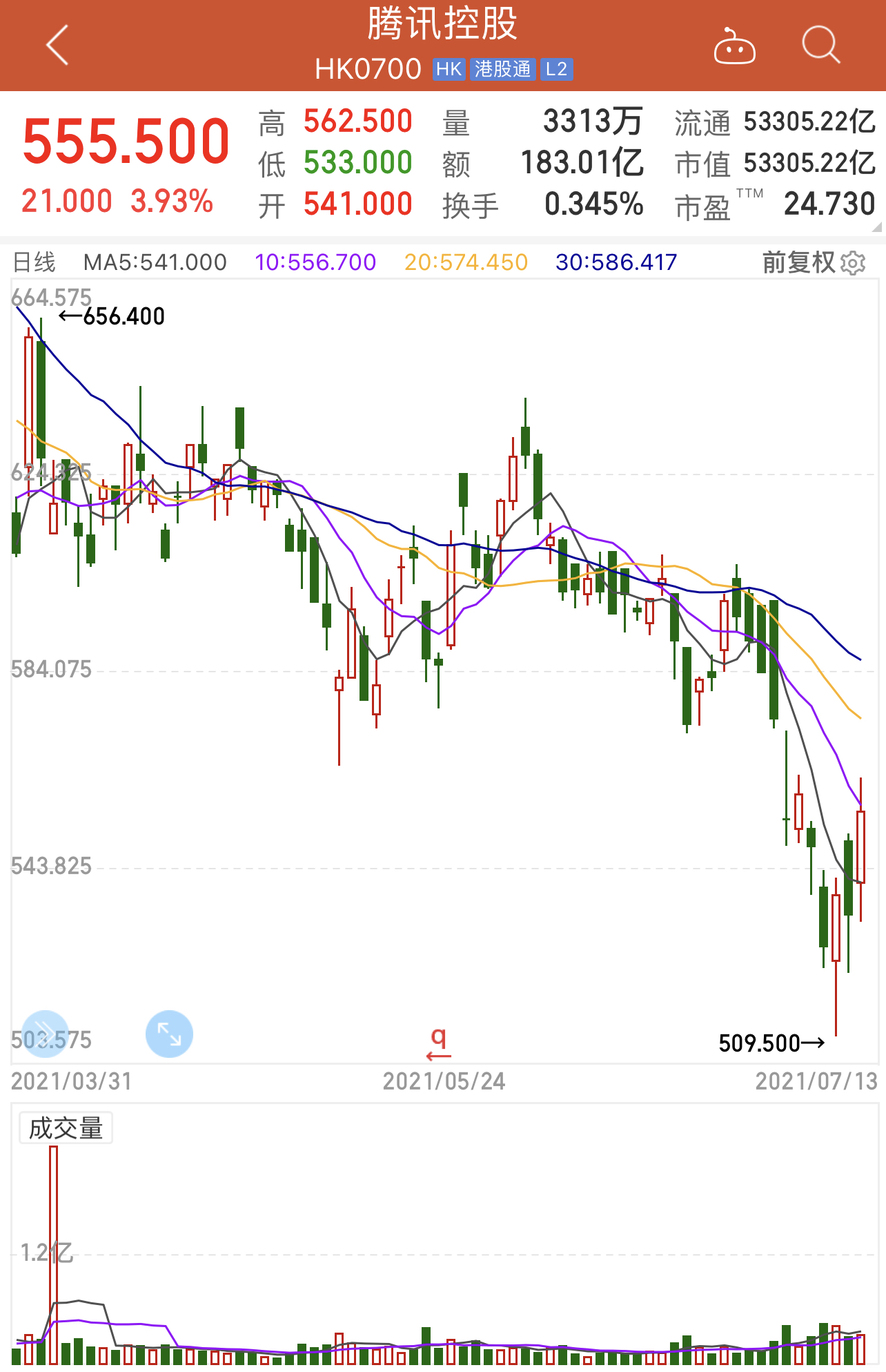 早在7月10日,由腾讯作为股东牵头的虎牙和斗鱼合并案被正式禁止。该案件是我国平台经济领域禁止经营者集中第一案。截至13日港股收盘,腾讯收报555.500港元/股,涨幅3.93%。但是也有机构在减持腾讯股票。晨星官网数据显示,截至6月30日,全球最大的中国股票基金减持腾讯控股4.11%。