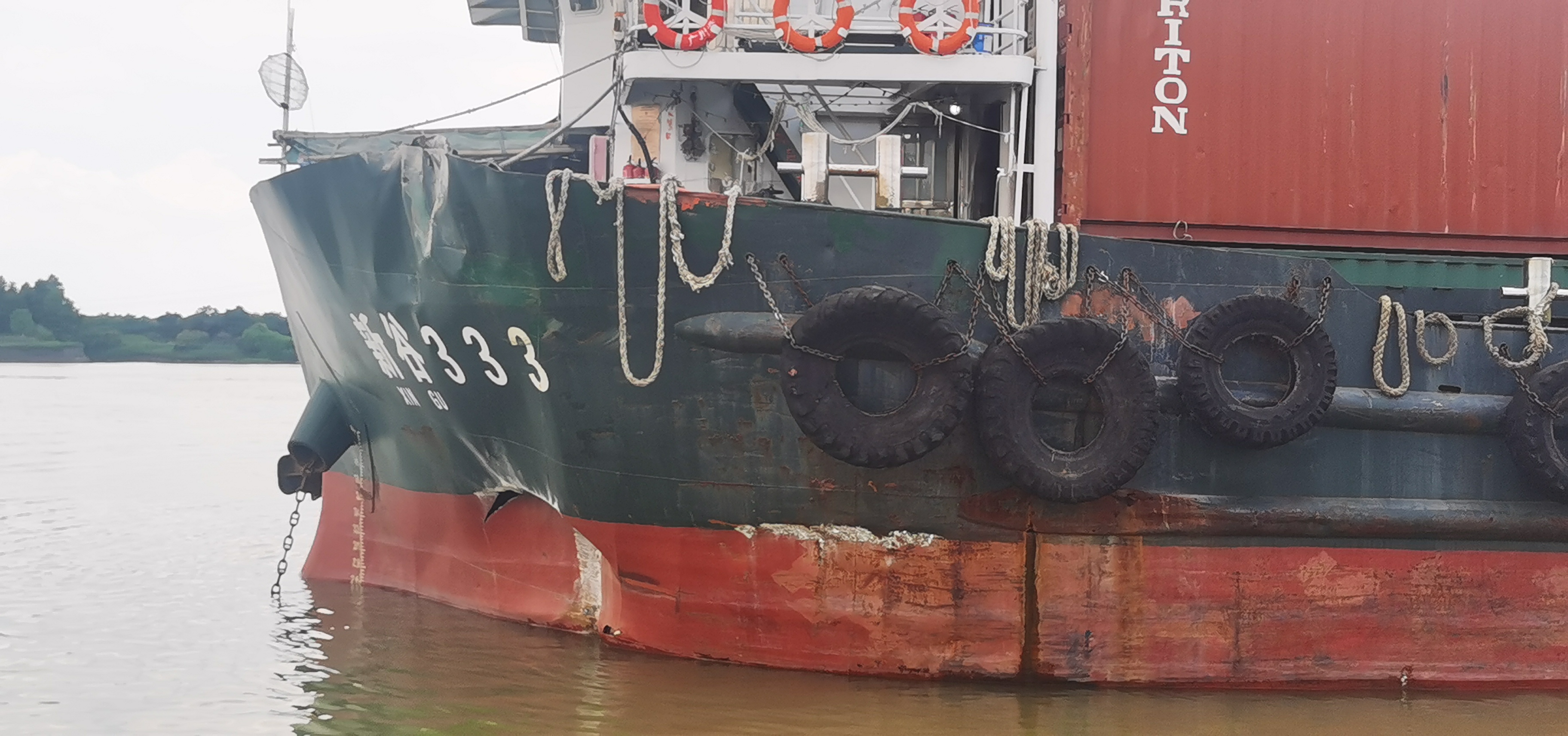 据广州海事局消息,2021年7月13日早上6时05分左右,从广州新港东江仓拟经浮莲岗水道、沙湾水道、容桂水道、虎跳门水道等驶往珠海高栏的内河集装箱船“新谷333”,在航经番禺沙湾水道北斗大桥时,触碰北斗大桥桥墩,造成北斗大桥一桥墩受损,“新谷333”船体轻微受损,未造成人员伤亡和水域污染。