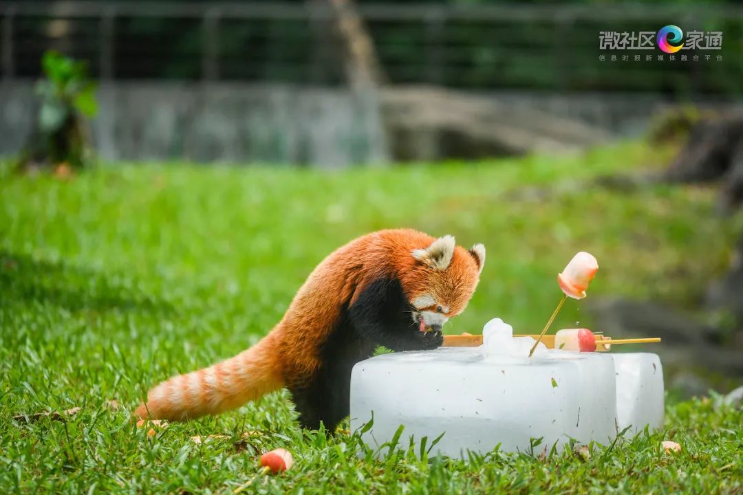 此外,炎炎夏日,为了让怕热的动物们继续舒适度夏,广州动物园的哺育员除了在长颈鹿、金丝猴等区域设置喷雾,熊猫馆全天24小时开着空调帮助动物们解暑外,大熊猫小熊猫还愉快地吃上了棒棒冰和水果冰,不亦乐乎。