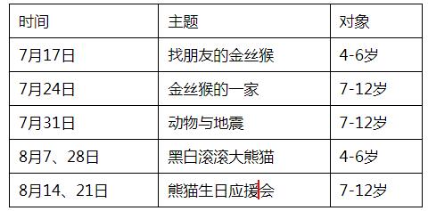 7月份主题:《金丝猴找朋友》、8月份主题:《熊猫澡堂》