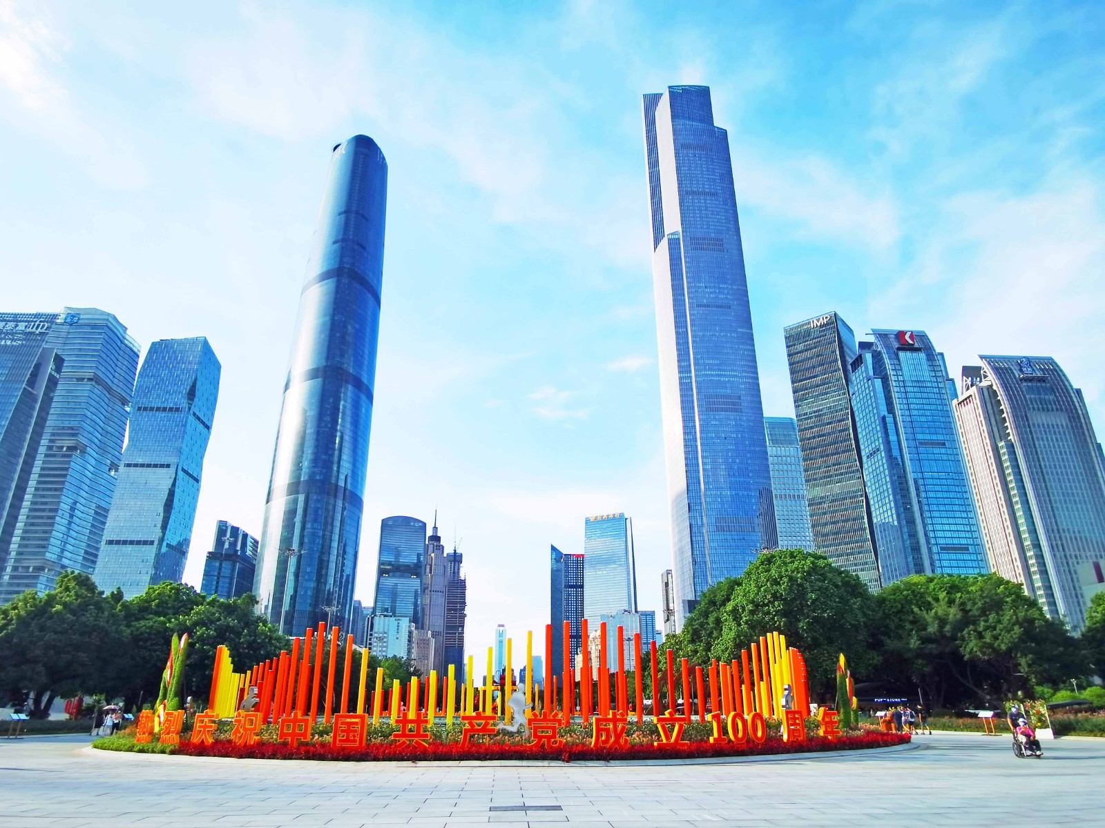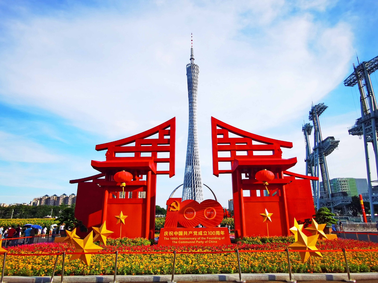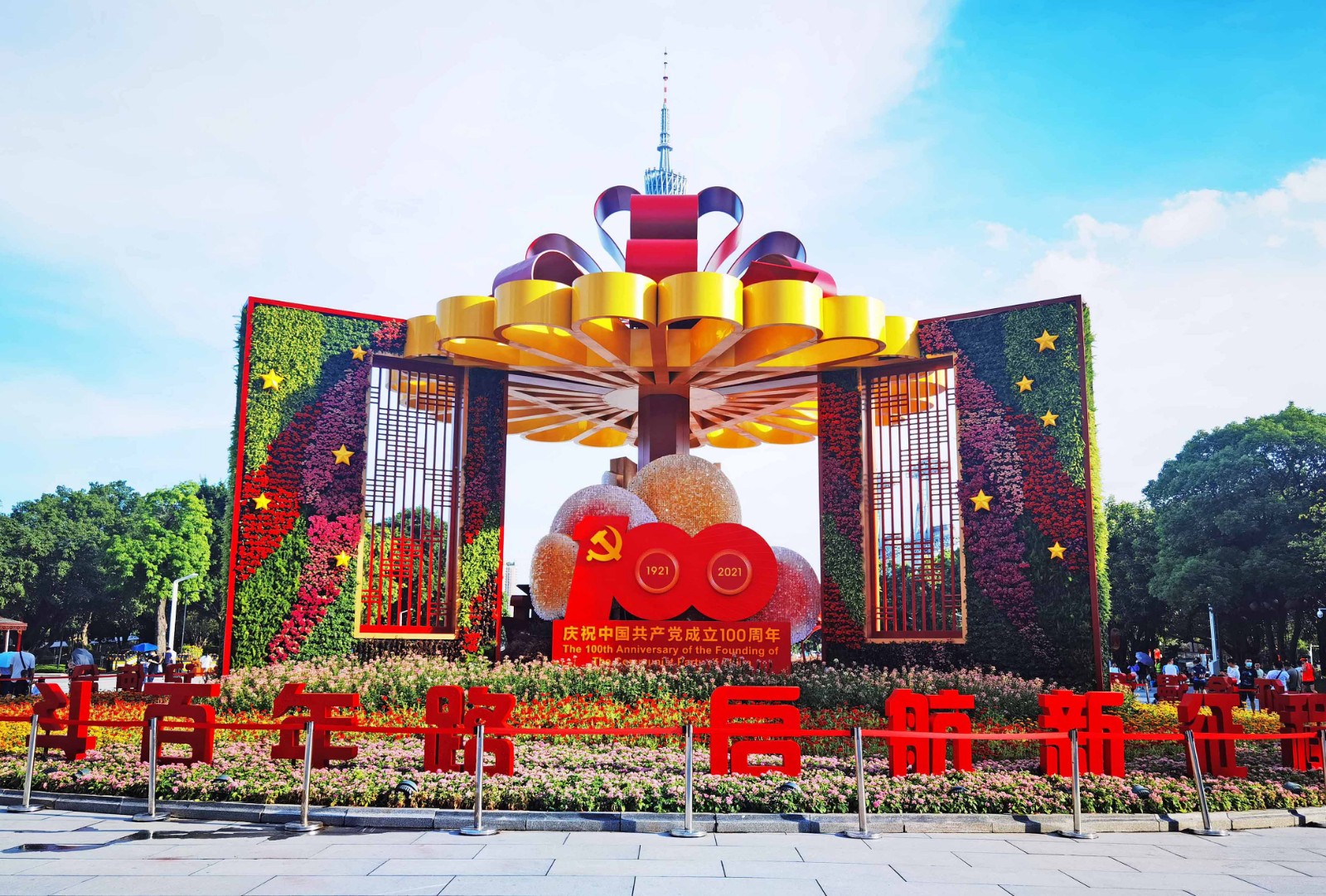 缤纷的花坛与蓝天下的小蛮腰构成一幅美丽的画卷。(摄影:王永芝)