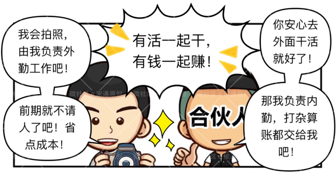 在分工方面,小农负责拍摄等外勤类工作,而合伙人则负责线上广告、业务洽谈、财务后勤等内勤类工作。