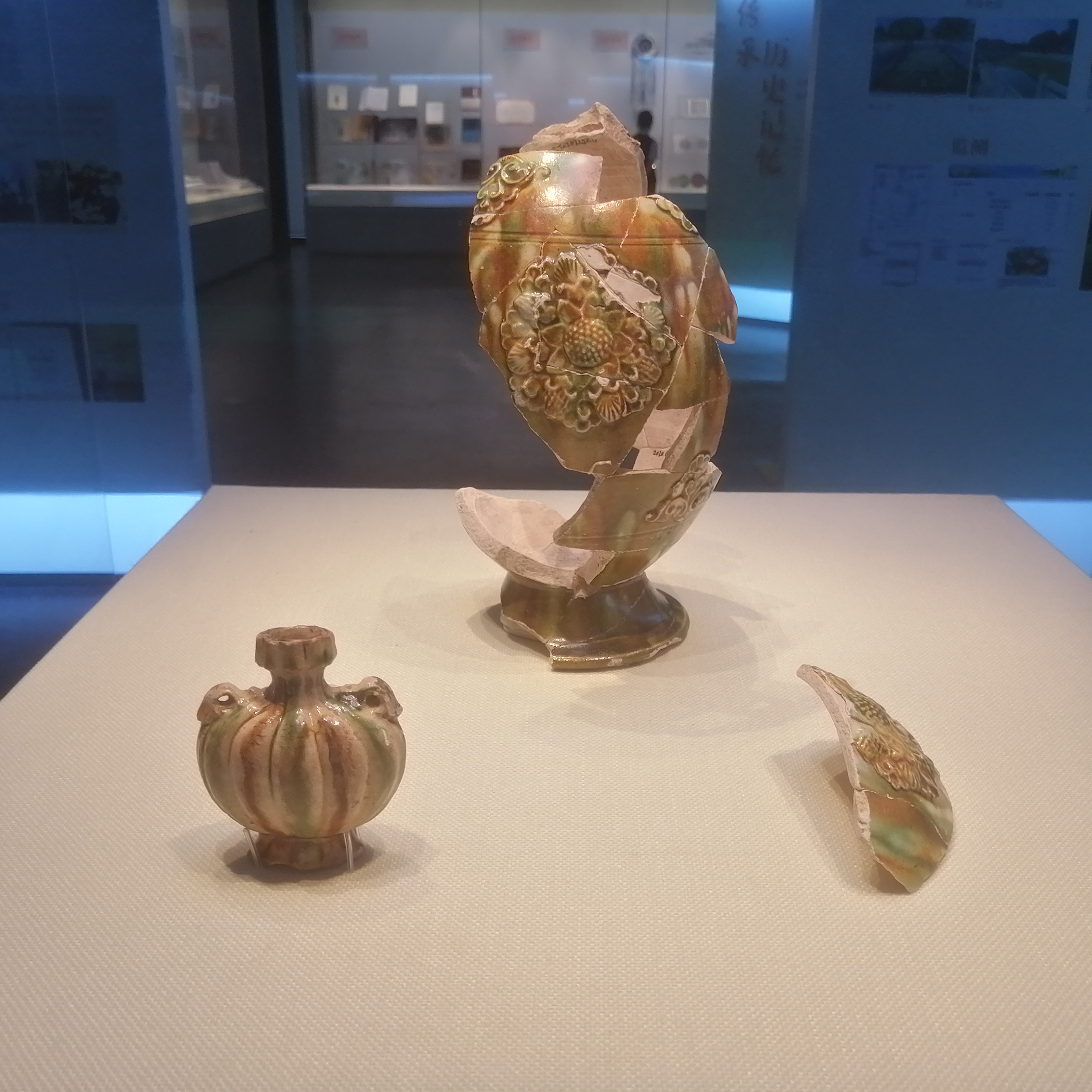 “广州是典型的古今重叠型城市“,展览的说明牌上如是写到,”2200余年来,以今中山四路、北京路为中心向四周拓展。‘十三五’时期,广州古城考古不断有重要新收获。越秀北路发现宋代广州城东城东北角台,大佛寺南院区发现五代南汉大型建筑基址,中山六路发现宋代大型磉墩,解放中路出土大量唐宋时期文物……为我们提供了关于不同历史时期广州城规模、布局,以及历史地理环境变迁等方面的更多信息。”