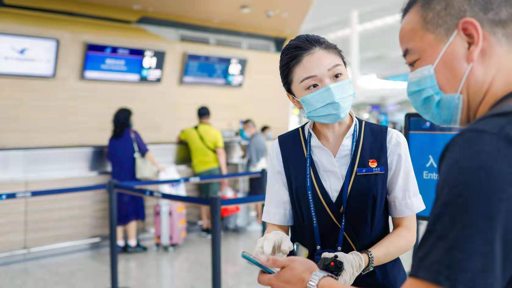 为切实做好疫情期间旅客出行保障,南航将根据旅客量变化灵活开放值机柜台和自助服务区域。高峰期时段,加强分流和引导,控制旅客密度,并严格落实值机、登机等各环节的快速测温、手部消毒等工作;航班运行期间,南航乘务员将严格落实疫情防控措施,加强机上洗手间、登机口等旅客交互区域定时消毒工作,关注老人、小孩等特殊旅客需求,确保防疫安全的同时,提供亲和精细暖心服务。