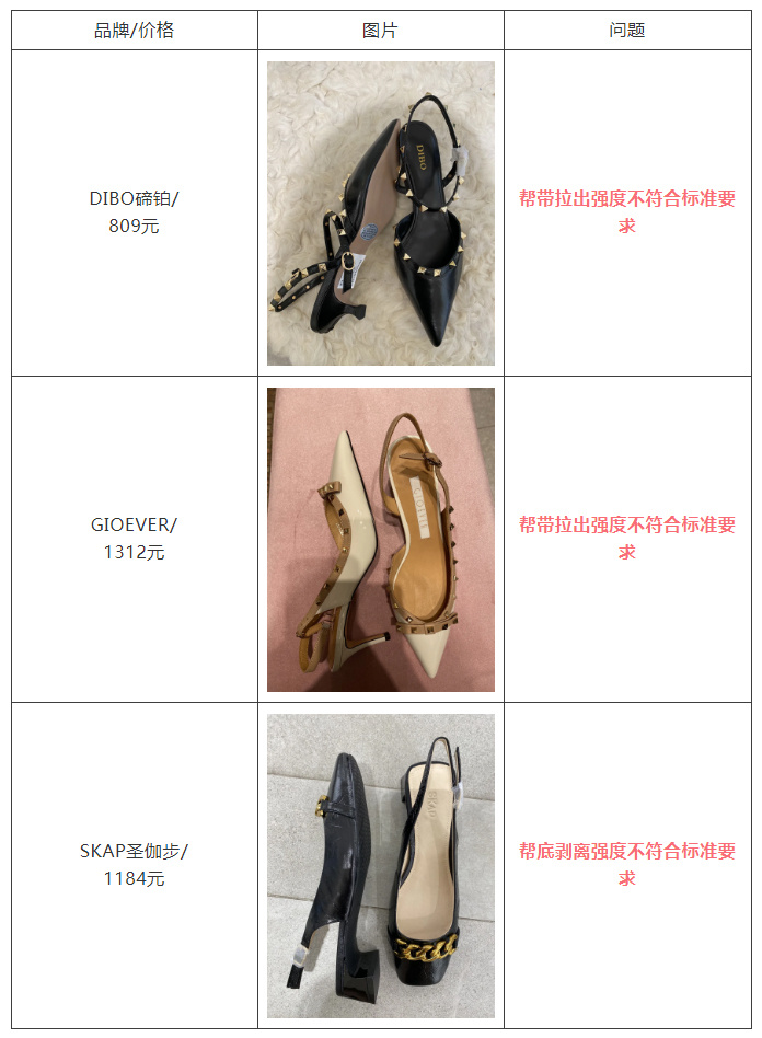 检测结果显示,3件样品帮带拉出强度或帮底剥离强度不符合其明示标准要求。