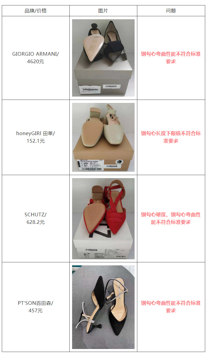 □ 耐穿性:GIORGIO ARMANI,钢勾心弯曲性能不符合标准要求