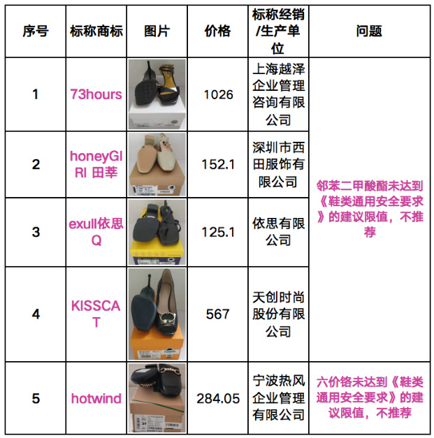 检测结果显示,4件样品邻苯二甲酸酯的检出值超过0.1%,1件样品衬里皮革部分六价铬含量为25mg/kg。