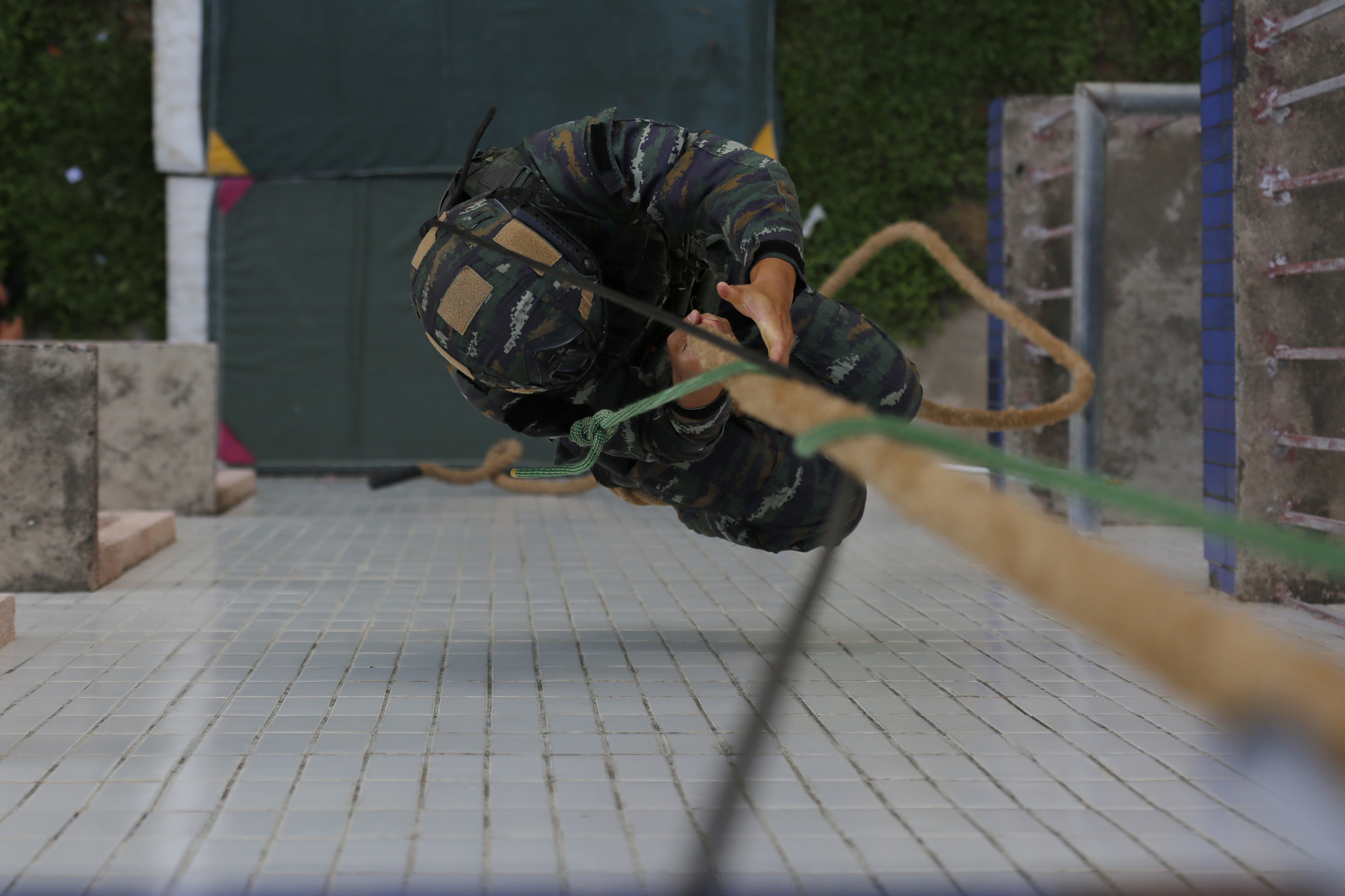 此次训练设置携枪通过障碍物、攀登、转移伤员、协同射击等多种课目。军事教练员张提景介绍,入伏天练兵,就是要在极端气候的环境下,培育特战队员顽强拼搏的战斗精神,从而在营造出“着眼实战抓训练、紧贴任务练精兵”的浓厚氛围,着力牵引部队训练向实战化、对抗性方向发展。