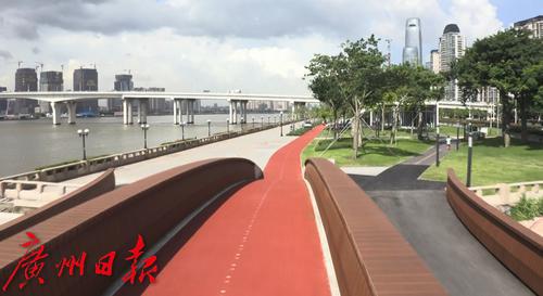 海珠区阅江路碧道项目位于阅江路北侧滨江景观带,铺设漫步道、慢跑道、自行车道,新建桥涵、驿站等。未来五年,在党建引领下,海珠区将按照“大环岛+小环岛”“环岛+湿地”的思路,打造覆盖海珠全岛的环岛碧道,切实增强群众的获得感、幸福感。