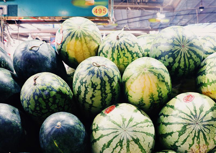 南宁市淡村菜市场里一家水果摊售卖的西瓜。李轩然摄