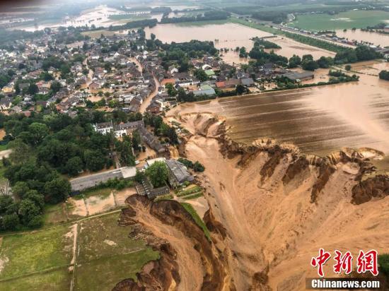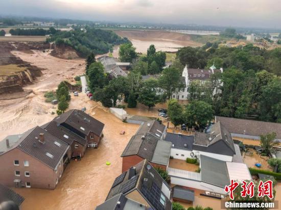 当地时间7月16日,德国Erftstadt-Blessem,遭到洪水侵袭的城镇。