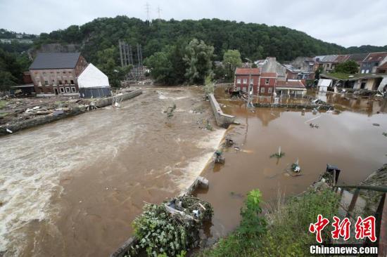 当地时间7月16日,比利时Pepinster,暴雨过后,洪水侵袭城镇。