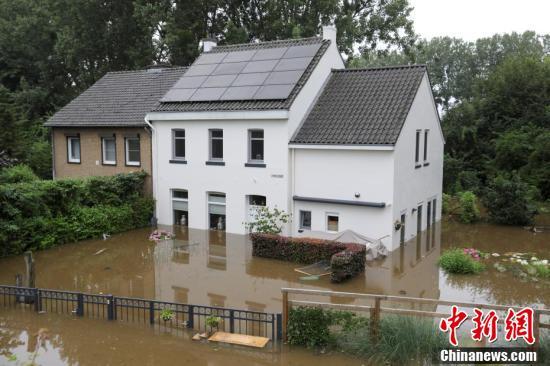 当地时间7月16日,荷兰Guelle,一座被洪水淹没的房子。