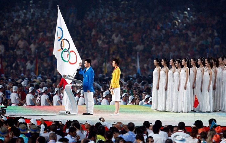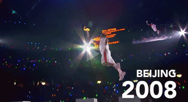 ▲2008年北京奥运会,中国体操运动员李宁手持火炬,如空中飞人般,踏过在体育场上方徐徐展开的一幅长卷,最终点燃了鸟巢体育馆的主火炬。