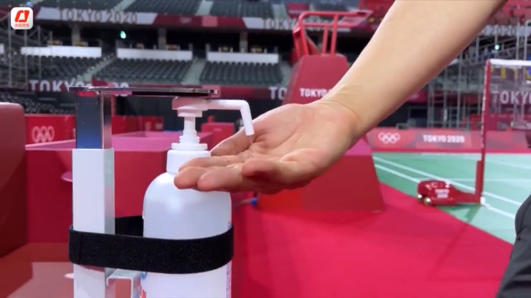 来到武藏野森林综合体育广场,会发现防疫准备做得非常充分,运动员席入口处两边,都有安放消毒液↓