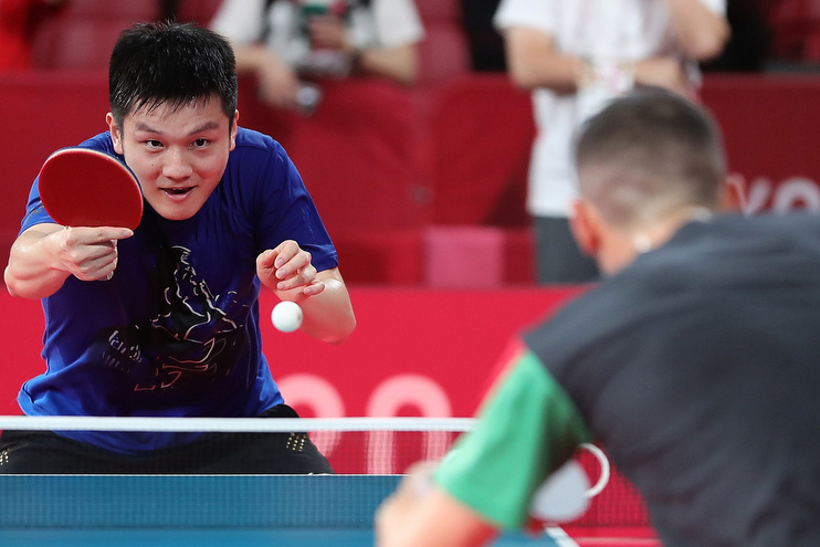 对于奥运比赛场馆东京体育馆,国乒一众主力并不陌生。2019年11月,国乒在这里参加团体世界杯并成功卫冕男团和女团冠军。今天上午是国乒主力阵容第一次进入奥运比赛场馆,中国乒协主席刘国梁亲自督战,六大奥运主力马龙、樊振东、许昕、陈梦、刘诗雯、孙颖莎全部获得训练机会,持替补P卡的王楚钦、王曼昱以及陪练梁靖崑负责与主力们合练。期间,马龙还与葡萄牙队阿波罗尼亚展开对攻。