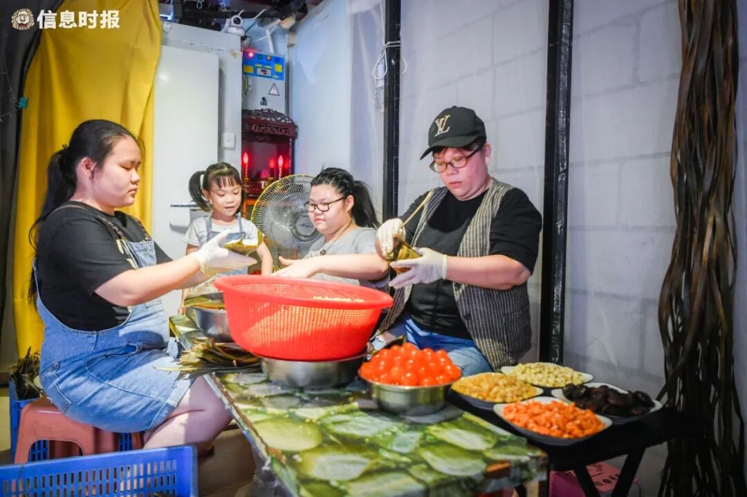 说起“全恩粽”的由来,老板娘邓惠方表示,她和丈夫是2004年起在这里开店的。“我们都是恩平人,‘全恩粽’这个名字,是从丈夫莫国全的名字中摘取的。”当年,夫妻俩在东山口不足4平方米的小店,白天包粽子,晚上煮粽子,二十多年来没有睡过一个整觉。“煮粽时,每隔两三小时就要翻动一下,让它均匀受热。”