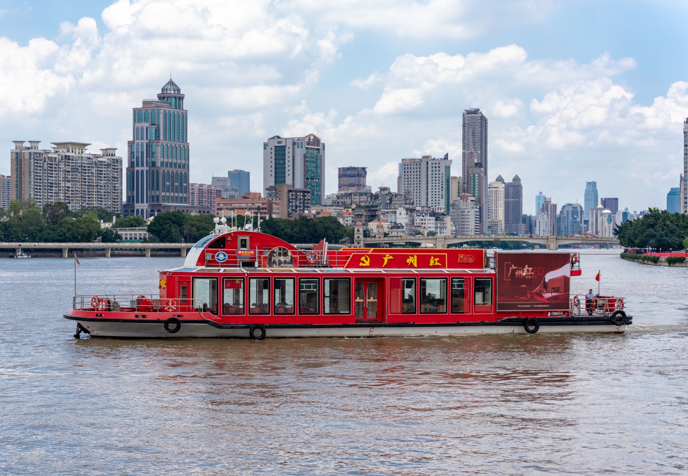 珠江上,“广州红”主题游轮和8条“红联水岸”党史学习教育主题航线,水陆接驳串联沿岸红色革命遗址,成为“流动的党史学堂”。
