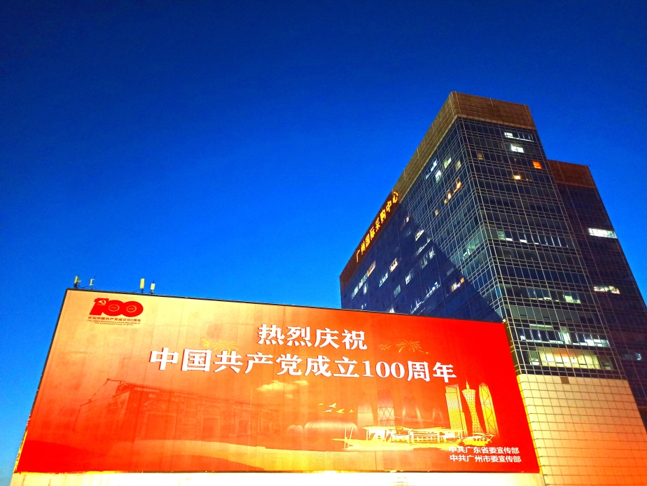 为热烈庆祝中国共产党成立100周年,广州以全城为背景、以红色为底色,营造“党的庆典、人民的节日”浓厚社会氛围。在1057块户外电子屏、943块户外大牌、812块地铁灯箱、1170个公交候车亭、380座报刊亭、3500台公交车、500台出租车、22553组道旗上作建党百年主题宣传。截至目前,广州塔、广州国际媒体港“智”屏、三大公信屏累计已发布党史学习教育和建党百年公益广告540多小时。