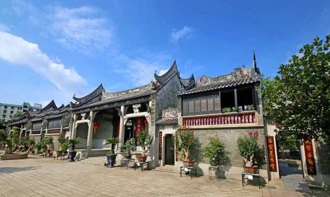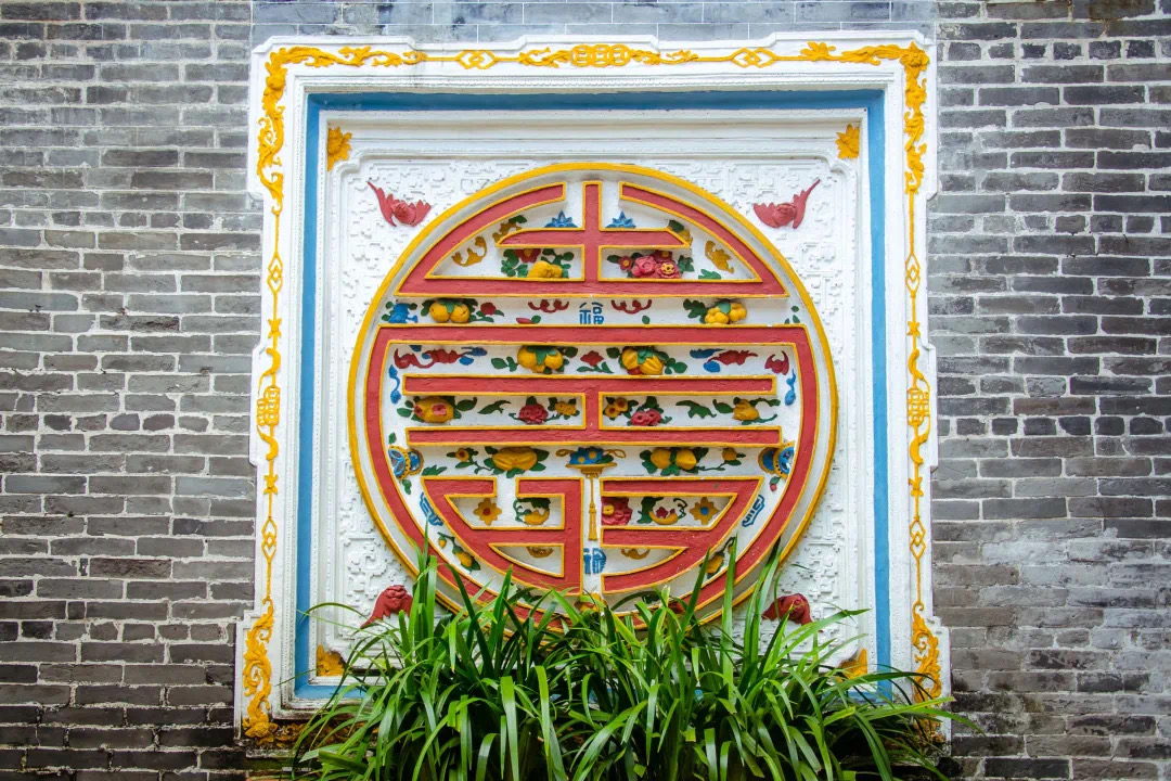据不完全统计,仅在文物区内可辨有主题的灰塑就约有360幅,堪称一座活着的番禺灰塑“百科全书”。灰塑远近均可观赏,色彩搭配喜用红、黄、绿三原色,出彩夺目,在青砖墙的基调里特别明显,赋予了古建筑一种神秘的色彩。