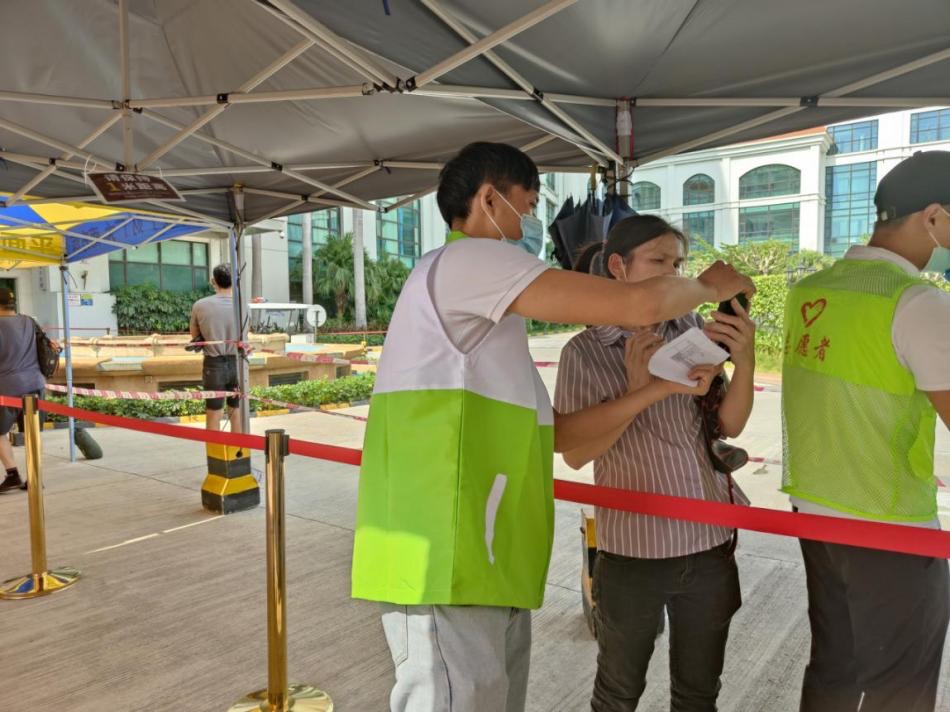 事实上,除刘柳芳外,疫苗接种科很多医生、护士、文员都把自己的家属、朋友喊过来当志愿者,他们有的引导接种疫苗,有的协助登记,有的维持秩序……每一个环节,都能看到他们靓丽的身影。
