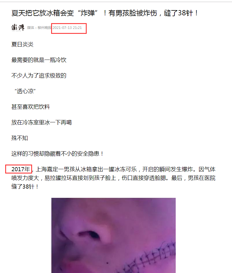 同时,男孩被冰可乐炸伤缝38针的内容足够可怕