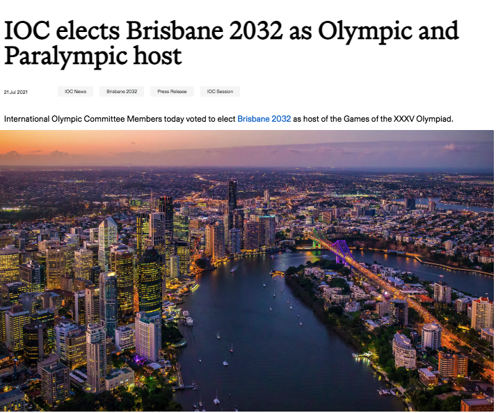 布里斯班成为2032年奥运会举办地也是国际奥委会新的奥运会举办地产生机制的结果,2019年国际奥委会改革了奥运会举办地的产生机制,不再采用以前有意愿举办城市提出申办,国际奥委会确定几个候选城市,最终全会投票表决的模式,而是成立了“奥运会举办地考察委员会”,以取代此前的“评估委员会”,新的奥运会举办地考察委员会负责向国际奥委会执委会推荐单个或者多个候选城市。