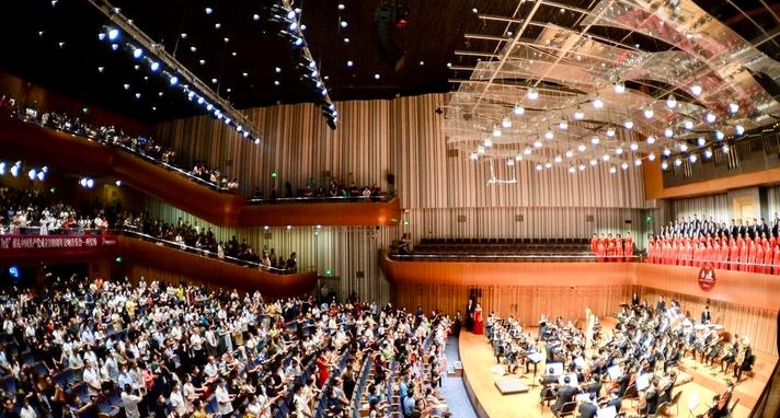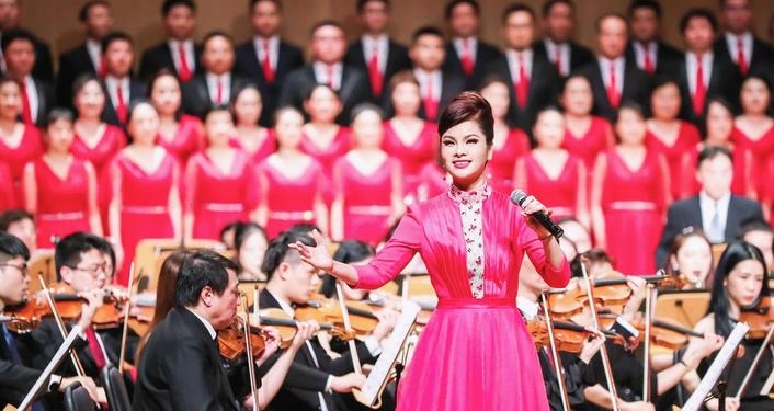 青年歌唱家欧阳铭芮现场演唱了《我爱你中国》《我的祖国》《在希望的田野上》以及《江山》《绒花》等歌曲,她发自内心深情的演唱,声音大气蓬勃与交响乐团的精彩演奏实现完美结合,表演亲切自然,酣畅淋漓、意犹未尽、震撼人心。