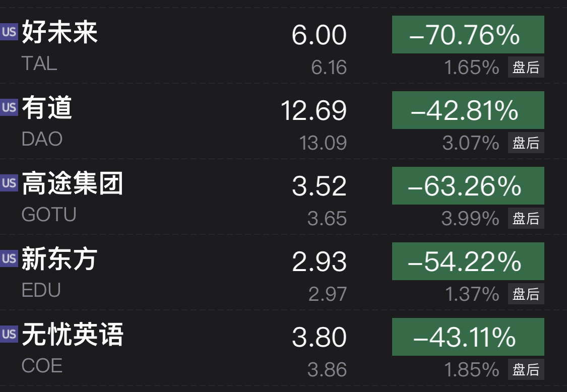 (截至25日记者交稿时多家教育股股价。来源:wind)