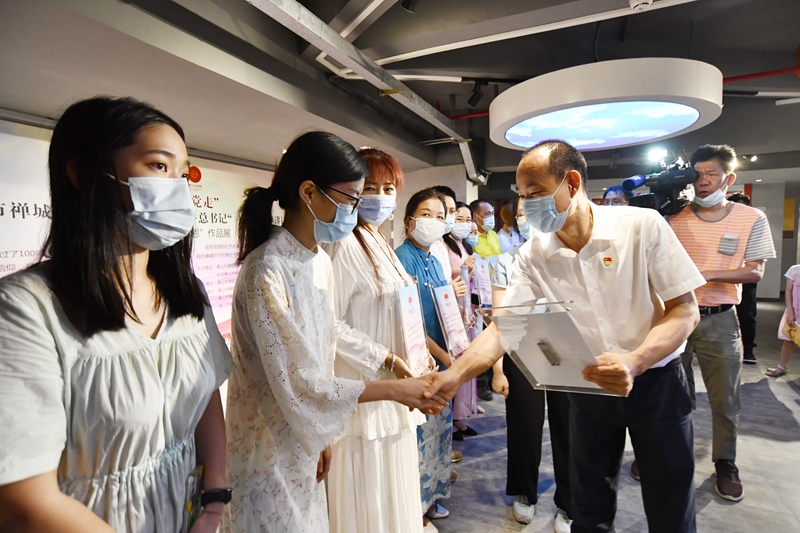 7月26日,“永远跟党走”佛山市禅城区学习宣传贯彻习近平总书记“七一”重要讲话精神“百幅剪纸颂党恩”作品展在禅城区文化馆一楼多功能展厅、非遗展厅开幕,中共佛山市禅城区委宣传部副部长、区文广旅体局副局长何文志为参展的国家级非物质文化遗产项目剪纸(广东剪纸)省、市级代表性传承人、剪纸老师颁授了作品参展荣誉证书。