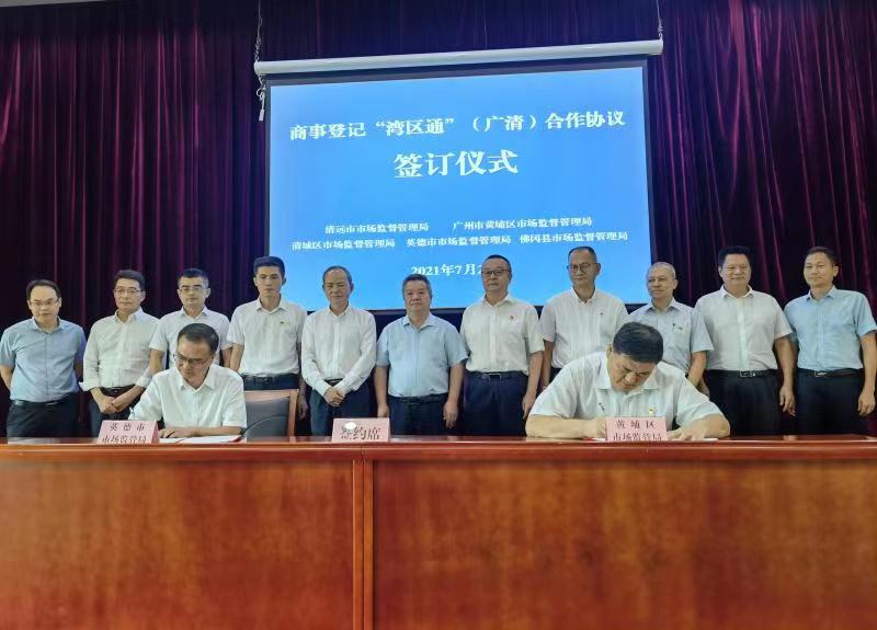 近日,广州市黄埔区市场监管局与清远市清城区、英德市、佛冈县市场监管局分别签订商事登记“湾区通”合作协议,针对广清人员异地工作生活、企业跨地域经营频繁的特点,通过政府部门加强联动、改革创新、信息共享,为两地企业提供商事登记“马上办、网上办、就近办、一地办”服务。