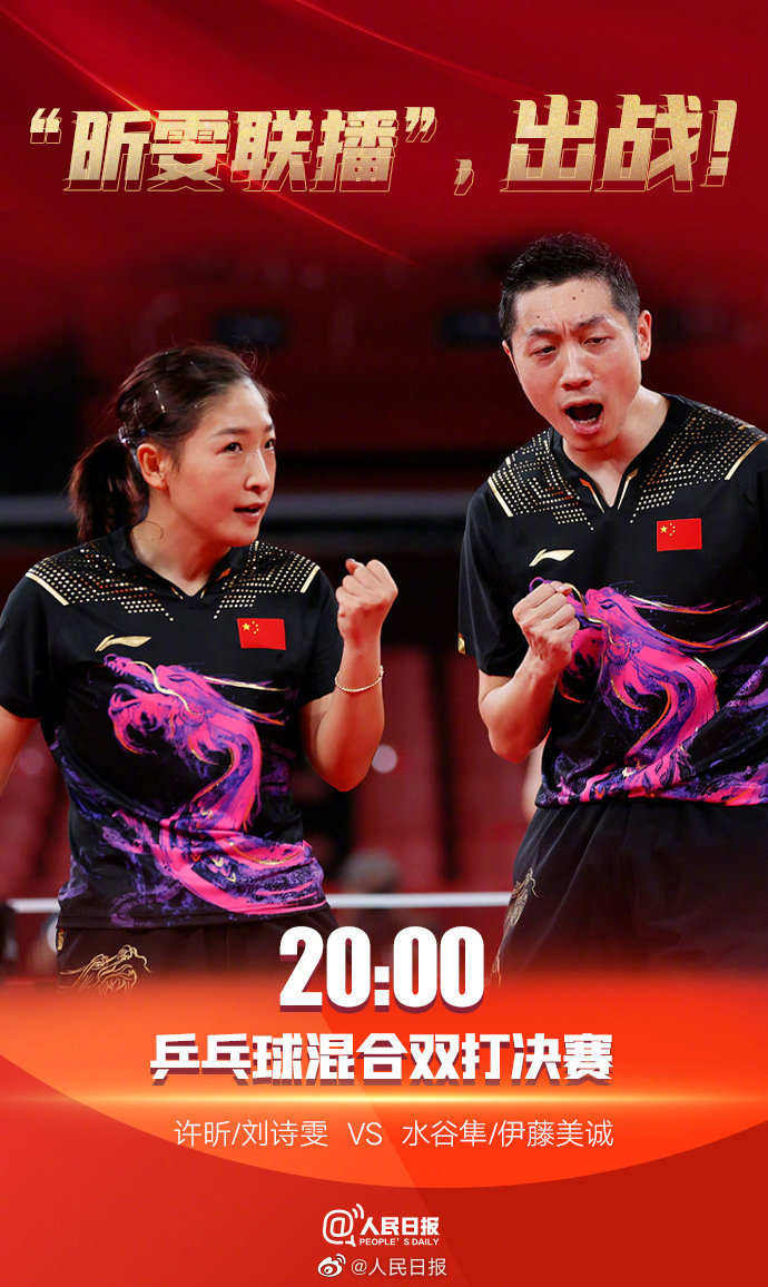北京时间今晚20点,东京奥运会乒乓球混双决赛,许昕/刘诗雯将对阵日本组合水谷隼/伊藤美诚。“昕雯联播”组合将向金牌发起冲击,转发加油!