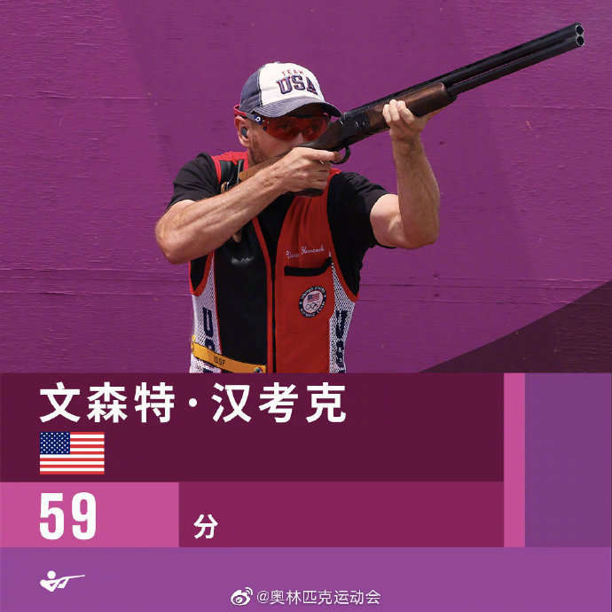 7月26日下午结束的东京奥运会男子双向飞碟项目中,美国名将文森特·汉考克以59的成绩打破奥运纪录,夺得金牌。丹麦选手汉森获得银牌,科威特选手阿卜杜拉赢得铜牌。