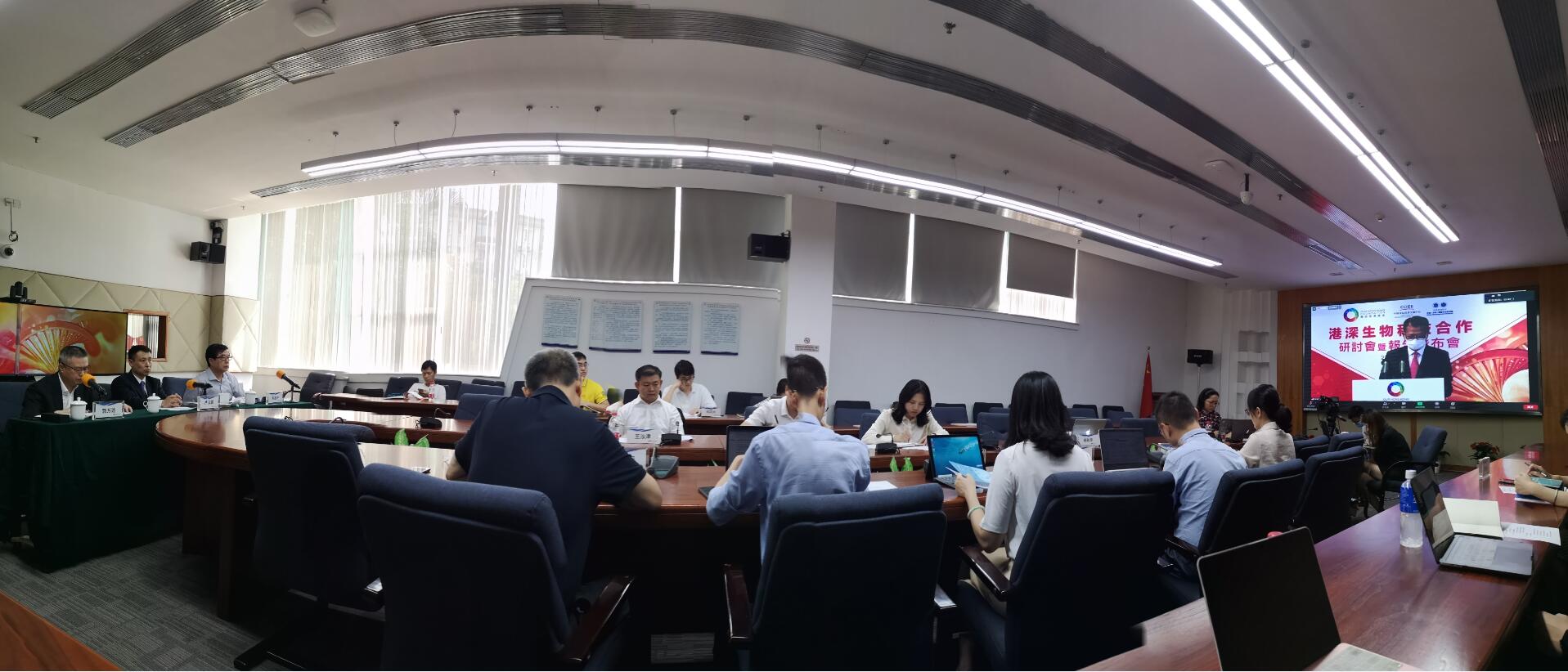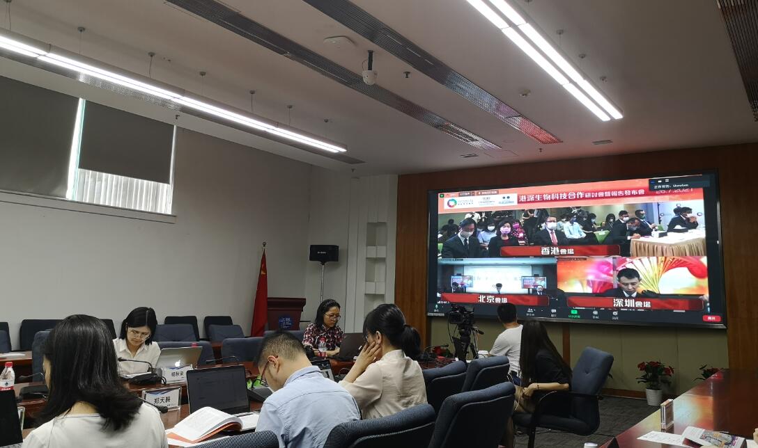 团结香港基金总裁郑李锦芬,香港特区政府财政司司长陈茂波,中国国际经济交流中心常务副理事长张晓强,深圳市委副秘书长、市委政策研究室主任卢文鹏分别在香港、北京、深圳作致辞。国家发展和改革委员会高技术司副司长王翔,深圳市决策咨询委员会专职委员刘忠朴,香港科学院院长及创院院士徐立之,香港中文大学医学院副院长(研究)卢煜明,国际欧亚科学院院士赵新力,香港科技园公司生物医药群组高级总监高为元,中国(深圳)综合开发研究院常务副院长郭万达等多位专家现场进行了连线研讨。