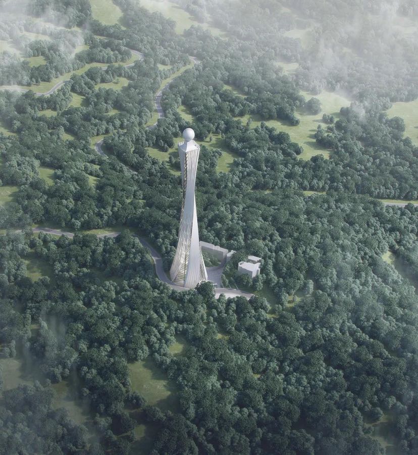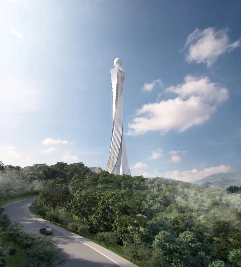 在波澜壮阔的城市发展浪潮中,番禺拔地而起一座座标志性的建筑物。而即将屹立在番禺区南村镇大镇岗山顶的一座海拔高度335.25米的气象塔(塔身主体高度188米),与广州塔遥相呼应,其扭转的塔身形象优美且极富动感,塔顶设观景空间,可俯瞰城市。