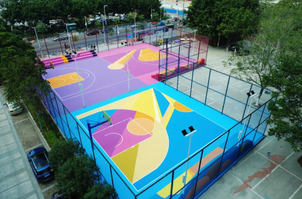 与BNS篮球一路之隔的南海万科广场,网红篮球场“后浪”同样让人惊艳,篮球场占地600㎡,设有2个球架,配备洗手池、休闲椅、打卡灯饰等。后浪篮球场还是目前佛山最高标准的户外篮球场,也是佛山首个使用奥运会指定运动地板(英利奥SES球场系列·普及级一代地板)的户外篮球场。