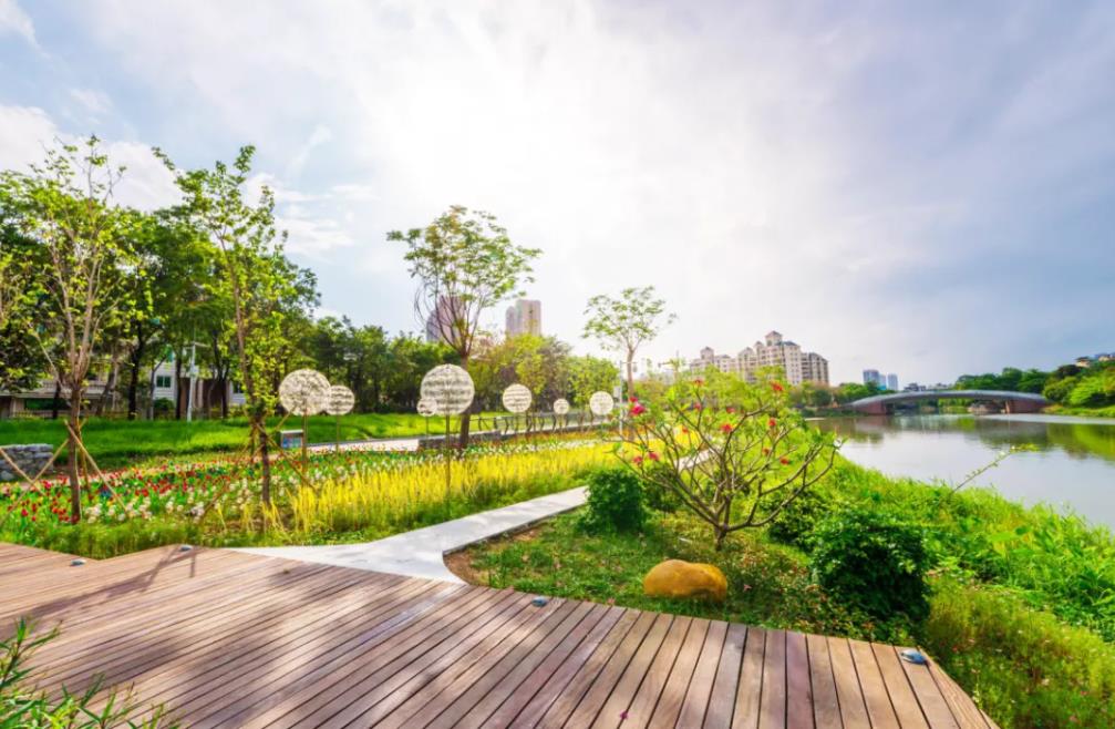 一河两岸,绿化轴心23万㎡的怡海湖公园,处处风光无限,姿态万千。湖岸边的湖岸亲水栈道、空中观景廊道、儿童摇摇乐、攀爬管游玩爬梯、童趣山丘......怡海湖公园已成为桂城城市美丽一景。